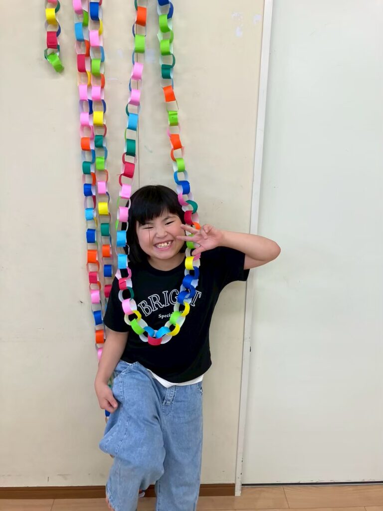 七夕飾りもつくり、輪つなぎでは自分の身長の高さまで繋げるぞ~!!と