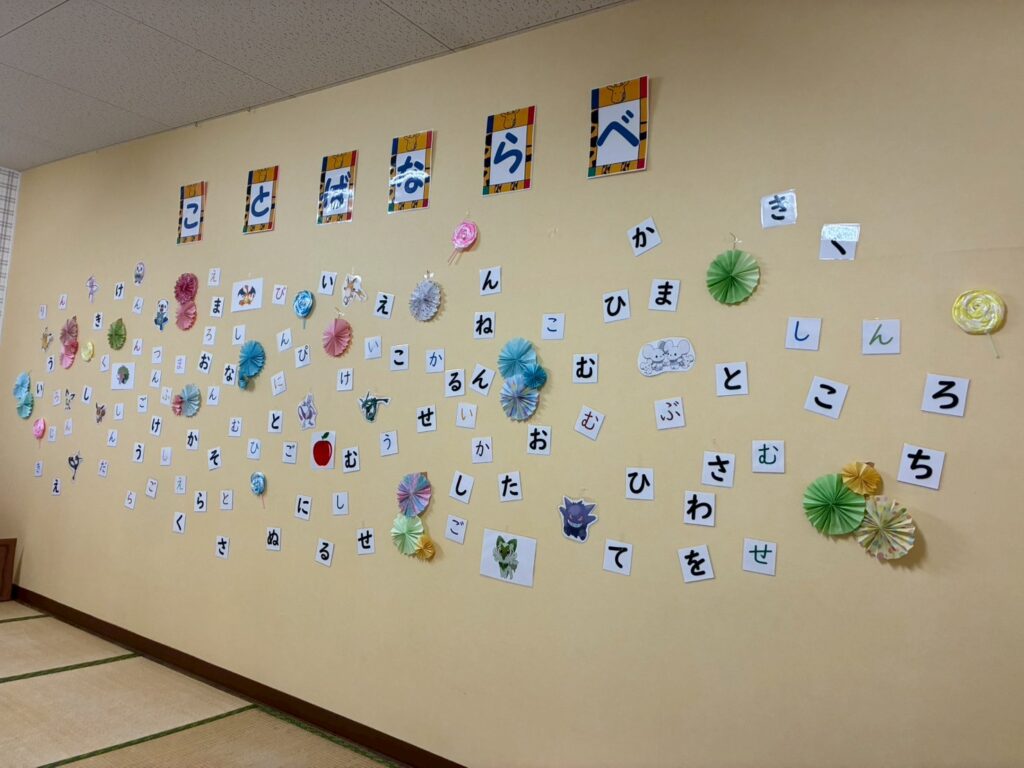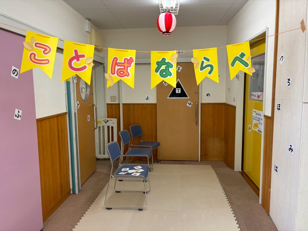 お題のイラストを見て壁に貼られた文字を探して言葉を完成させるゲームです😊