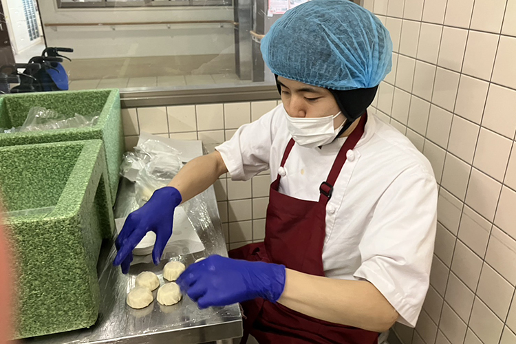 現在は肉まんづくりにも取り組んでいます。うれしいことに年間40,000個の注文をいただけるまでになり、大奮闘しています。